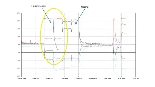 In this case study, the stepper valve in the refrigeration was struggling—a malfunction that resulted in barely a blip on the temperature chart. If the stepper valve malfunction continued, it would drastically affect the longevity of the chamber. It would lead to other part failures, resulting in reduced temperature stability for the product.